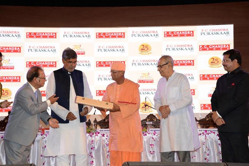 Kailash Satyarthi (2017) – Left to right: Shri A. K. Chandra, Shri Kailash Satyarthi (Puraskaar recipient, Indian activist), Swami Suparnananda Maharaj, Shri Shirshendu Mukhopadhyay (Bengali author) and Shri Prosanto Chandra