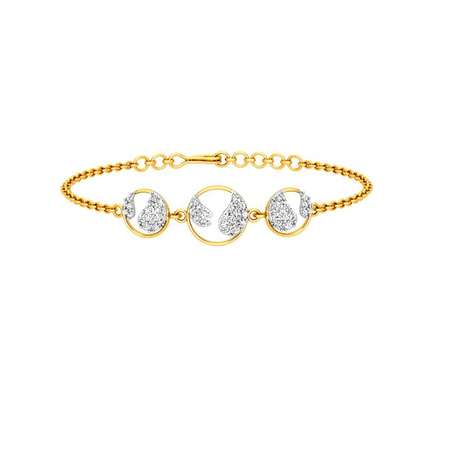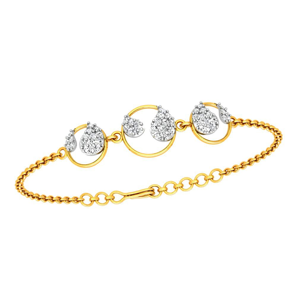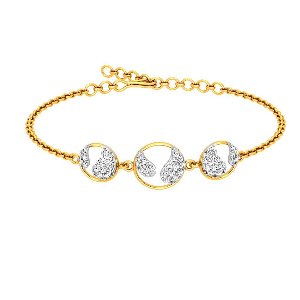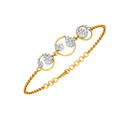This is an elegant diamond and gold bracelet design with thirty-four 0.5CT diamonds studded in it which comes with SGL/EGL/PCC CERTIFICATION. The 18K diamond bracelet is made up of BIS hallmark gold that weights 3.15gms and has a dimension of 4.5cm*5.6cm*