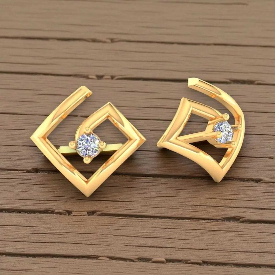 The Aurevo Square earrings embody bold minimalism with a touch of brilliance. Crafted in 14KT (585) yellow gold, this striking geometric design features interlocking square frames centered with sparkling natural diamonds. Lightweight yet eye-catching, these earrings are perfect for women who love contemporary elegance with a refined edge.Premium 14KT (585) Yellow Gold – Weighs 0.85 g for durability and everyday comfort.Brilliant-Cut Natural Diamonds – Two diamonds (0.06 CT total), IJ color, SI clarity for sparkling radiance.Geometric Square Design – Bold layered square pattern with a central diamond for modern appeal.Ideal Daily Wear Size – Measures 1 cm length × 1.1 cm width, versatile for office, casual, or party wear.Authenticity Guaranteed – From P.C. Chandra Jewellers, known for hallmarked gold and timeless craftsmanship.