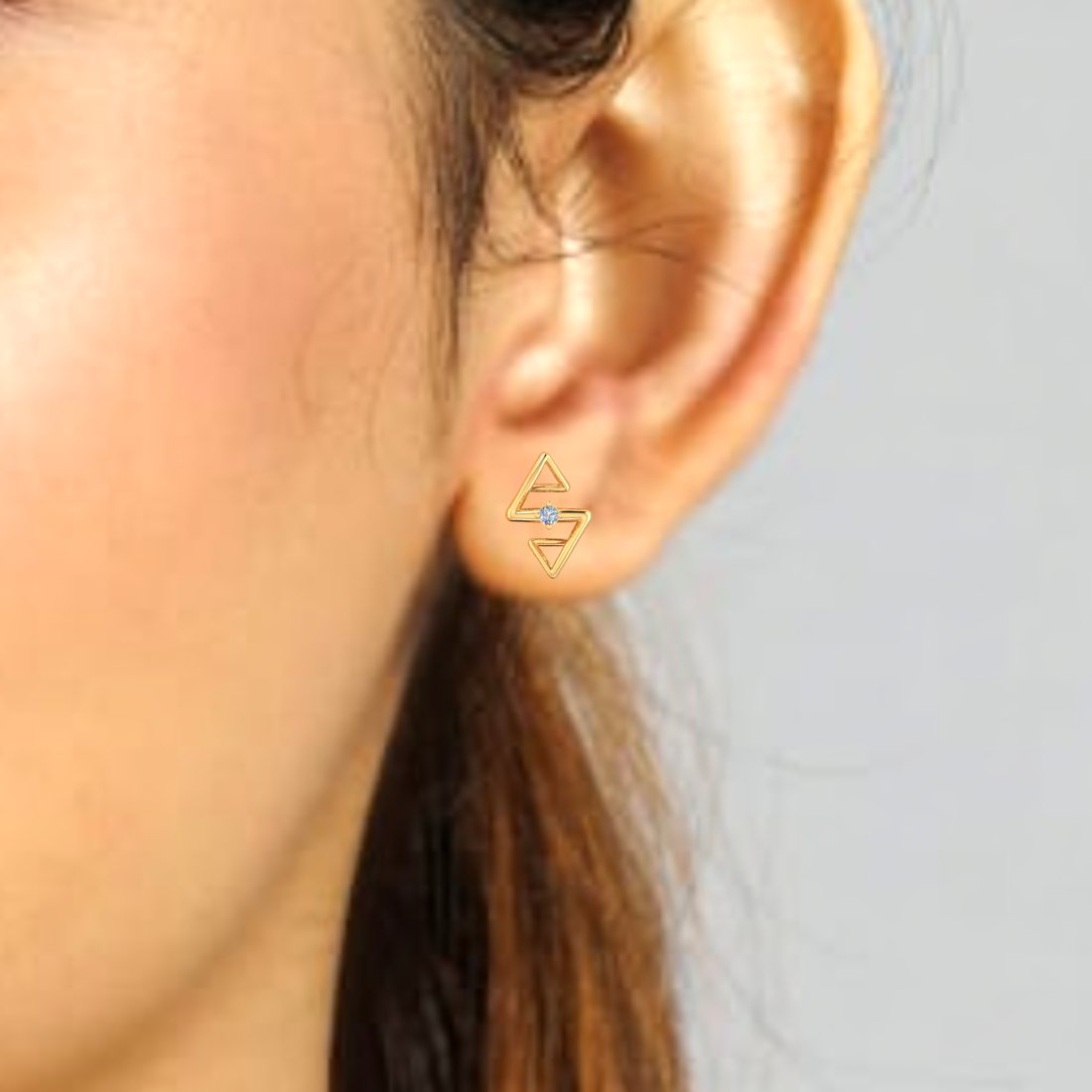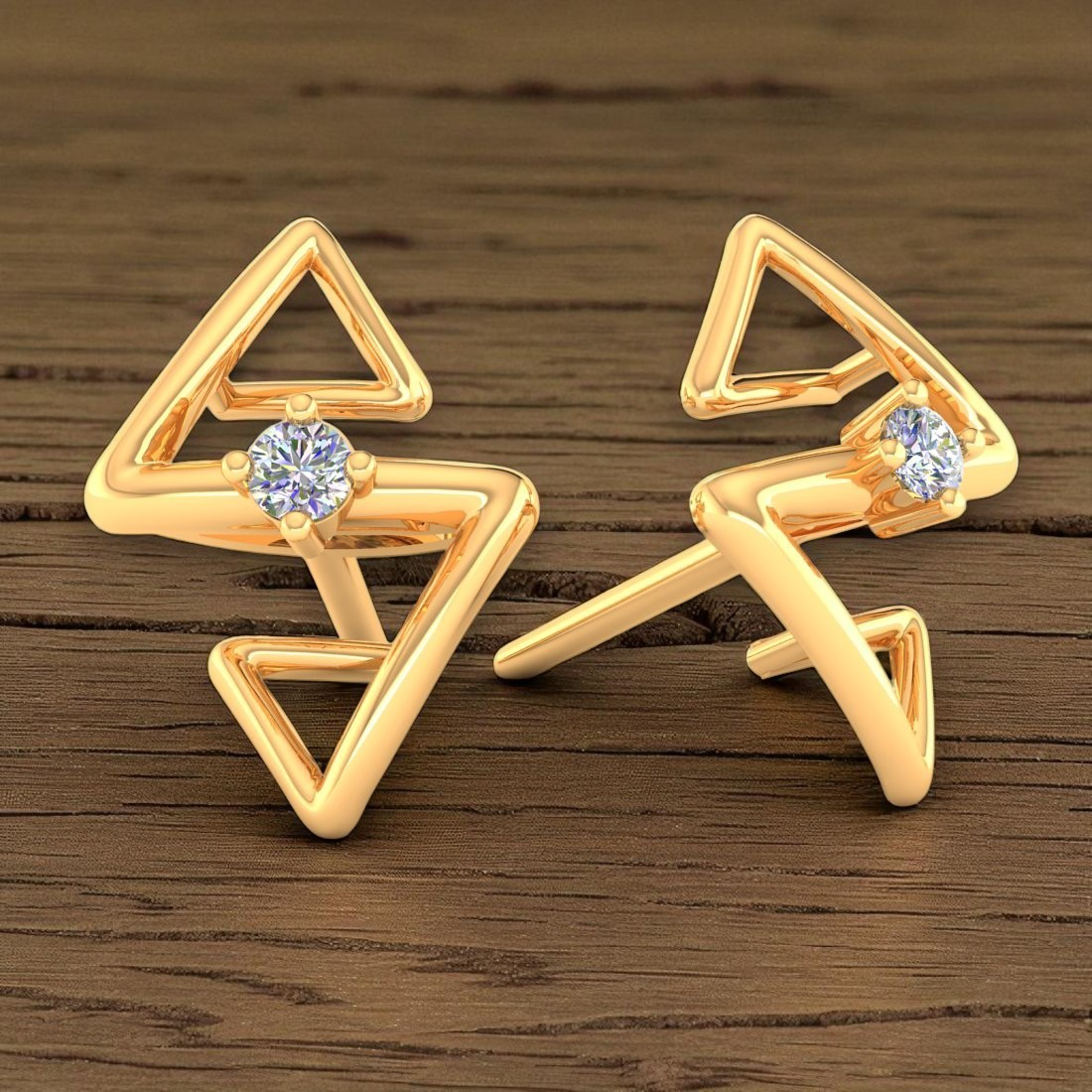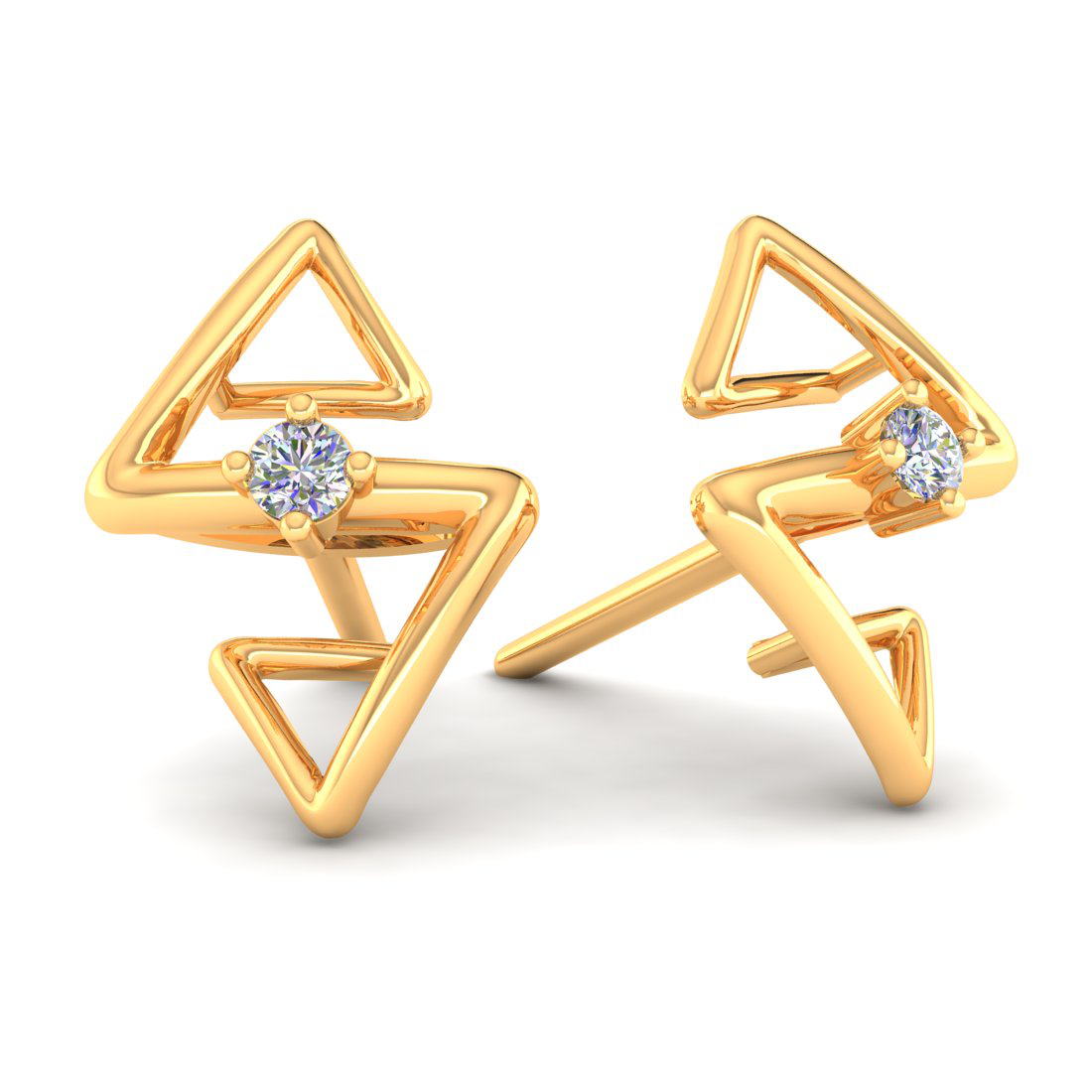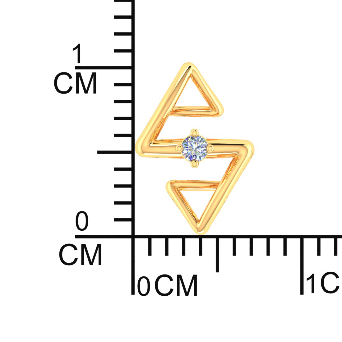 Modern elegance meets artistic geometry in the GeoSpark stud earrings by P.C. Chandra Jewellers. Crafted in 14KT (585) yellow gold and adorned with two brilliant-cut diamonds, these earrings balance edgy triangular motifs with timeless sparkle. Lightweight yet striking, they’re perfect for daily wear as well as festive occasions.Authentic 14KT (585) Yellow Gold – Lightweight 0.62 g gold construction ensures comfort with a premium look.Brilliant Diamond Sparkle – Set with 2 natural diamonds (0.03 CT total), SI color, IJ clarity for lasting shine.Unique Geometric Design – Contemporary triangle-inspired form adds a bold, stylish statement.Compact Yet Eye-Catching – Perfectly sized at 1 cm length × 0.7 cm width for daily elegance.Trusted Jewellery Brand – From P.C. Chandra Jewellers, known for hallmarked gold and fine craftsmanship.