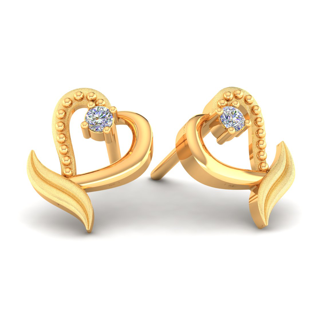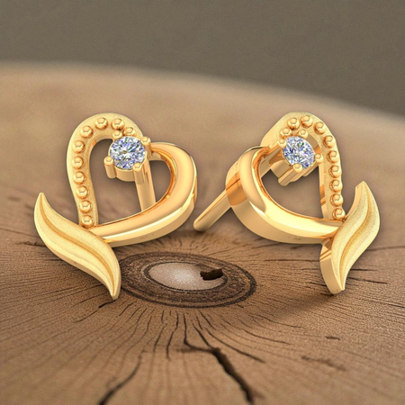 Amora Heart 14KT (585) Yellow Gold and Certified Natural Diamond Stud Earrings