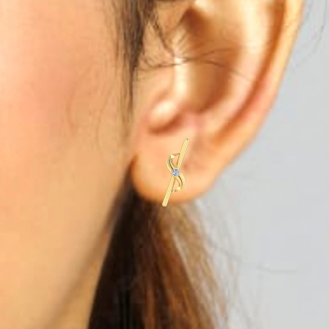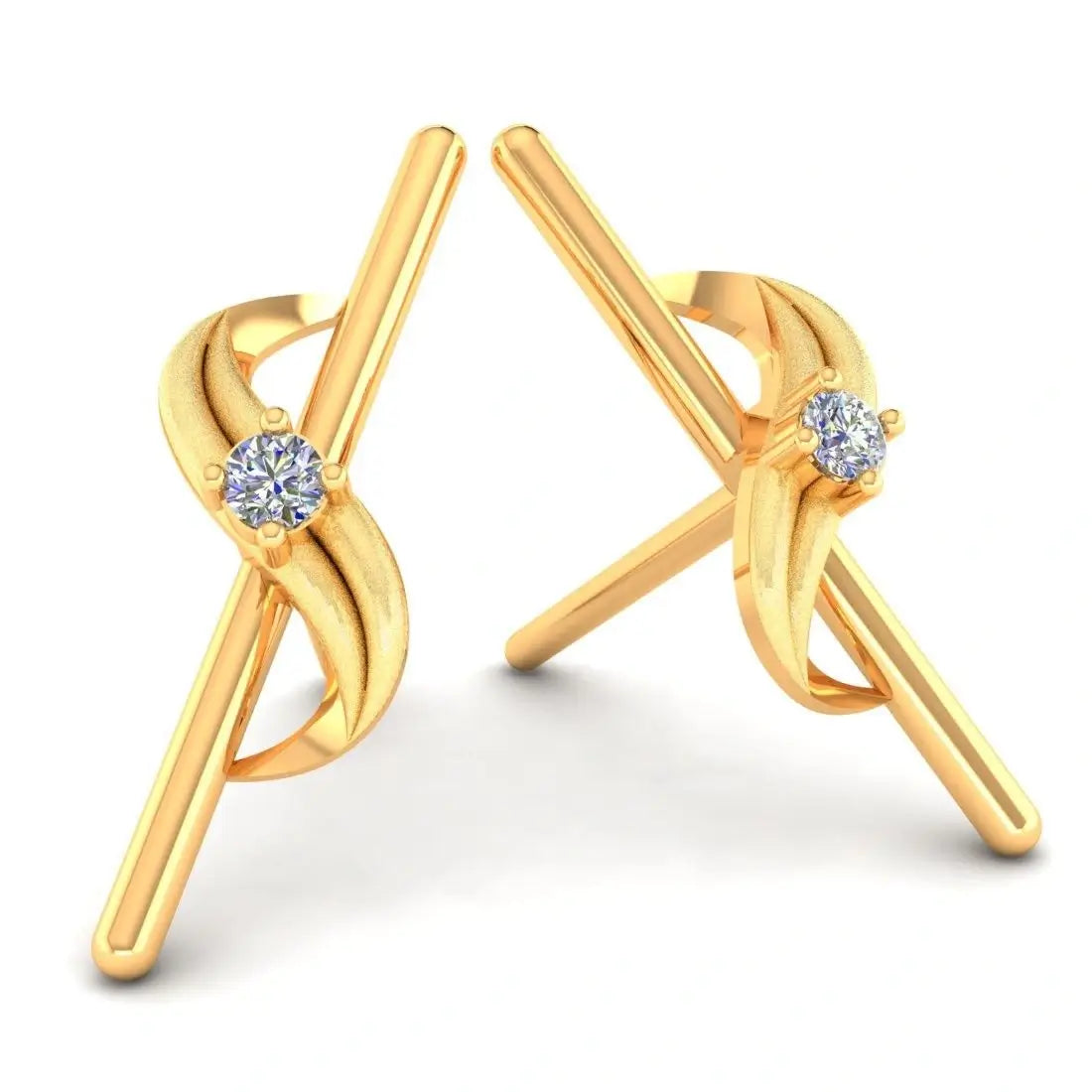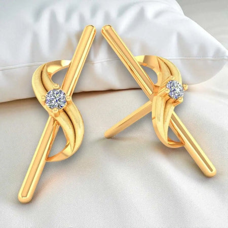The Elara Twist earrings embody elegance with a contemporary edge. Crafted in 14KT (585) yellow gold, the design features a slender bar intersected with a graceful twist, set with a sparkling diamond at the center. Lightweight yet stylish, these earrings are ideal for women who appreciate minimal, versatile jewellery that transitions effortlessly from day to evening.Authentic 14KT (585) Yellow Gold – Lightweight 0.67 g design for everyday comfort and shine.Natural Sparkling Diamonds – Two brilliant-cut diamonds (0.03 CT total), IJ color, SI clarity.Modern Twist-Bar Design – Sleek intersecting bars with a central diamond for chic sophistication.Versatile Everyday Size – Measures 1.4 cm length × 0.6 cm width, perfect for office, casual, or party wear.Trusted Craftsmanship – From P.C. Chandra Jewellers, renowned for hallmarked jewellery and fine detailing.