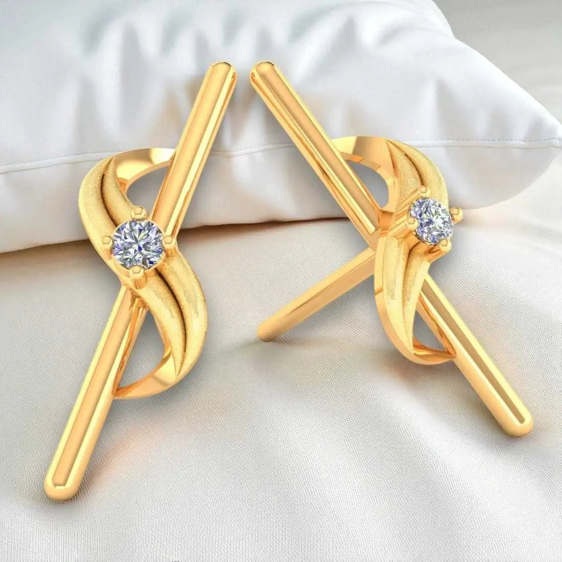 The Elara Twist earrings embody elegance with a contemporary edge. Crafted in 14KT (585) yellow gold, the design features a slender bar intersected with a graceful twist, set with a sparkling diamond at the center. Lightweight yet stylish, these earrings are ideal for women who appreciate minimal, versatile jewellery that transitions effortlessly from day to evening.Authentic 14KT (585) Yellow Gold – Lightweight 0.67 g design for everyday comfort and shine.Natural Sparkling Diamonds – Two brilliant-cut diamonds (0.03 CT total), SI color, IJ clarity.Modern Twist-Bar Design – Sleek intersecting bars with a central diamond for chic sophistication.Versatile Everyday Size – Measures 1.4 cm length × 0.6 cm width, perfect for office, casual, or party wear.Trusted Craftsmanship – From P.C. Chandra Jewellers, renowned for hallmarked jewellery and fine detailing.