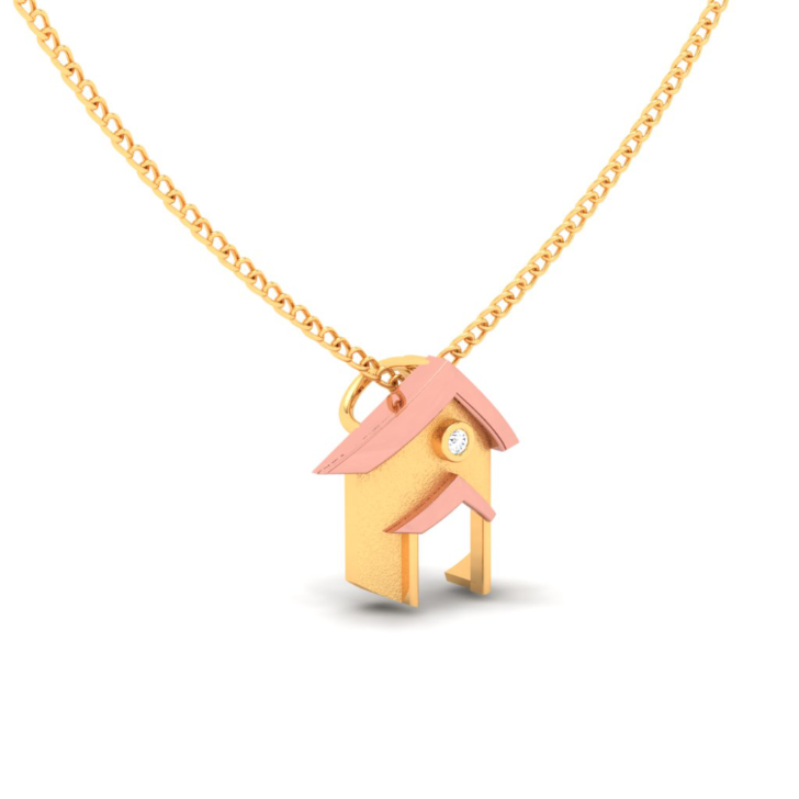 18k Tiny Home Shape Gold & Diamond Pendant From P.c Chandra Jewellers