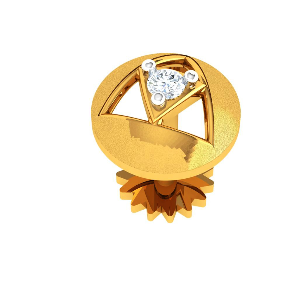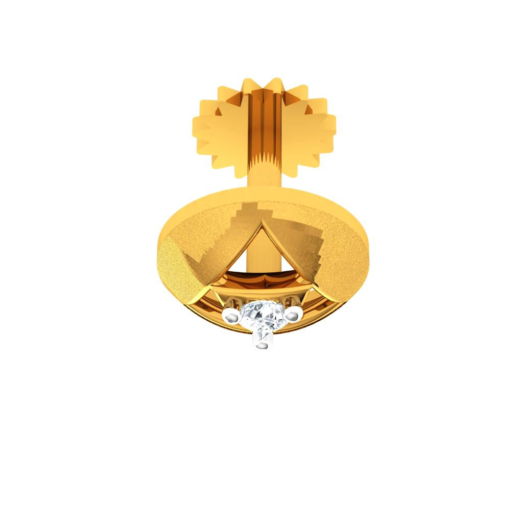 Gift it to someone, or let it be a gift for yourself, nothing can beat this exclusively beautiful triangle-themed gold & diamond nose pin from our collection. The pair comes with a dimension of 0.6 CM*0.6 CM*0.6 CM, certified with BIS Hallmark, made with pure 18KT yellow gold, and weighs 0.471 gm.