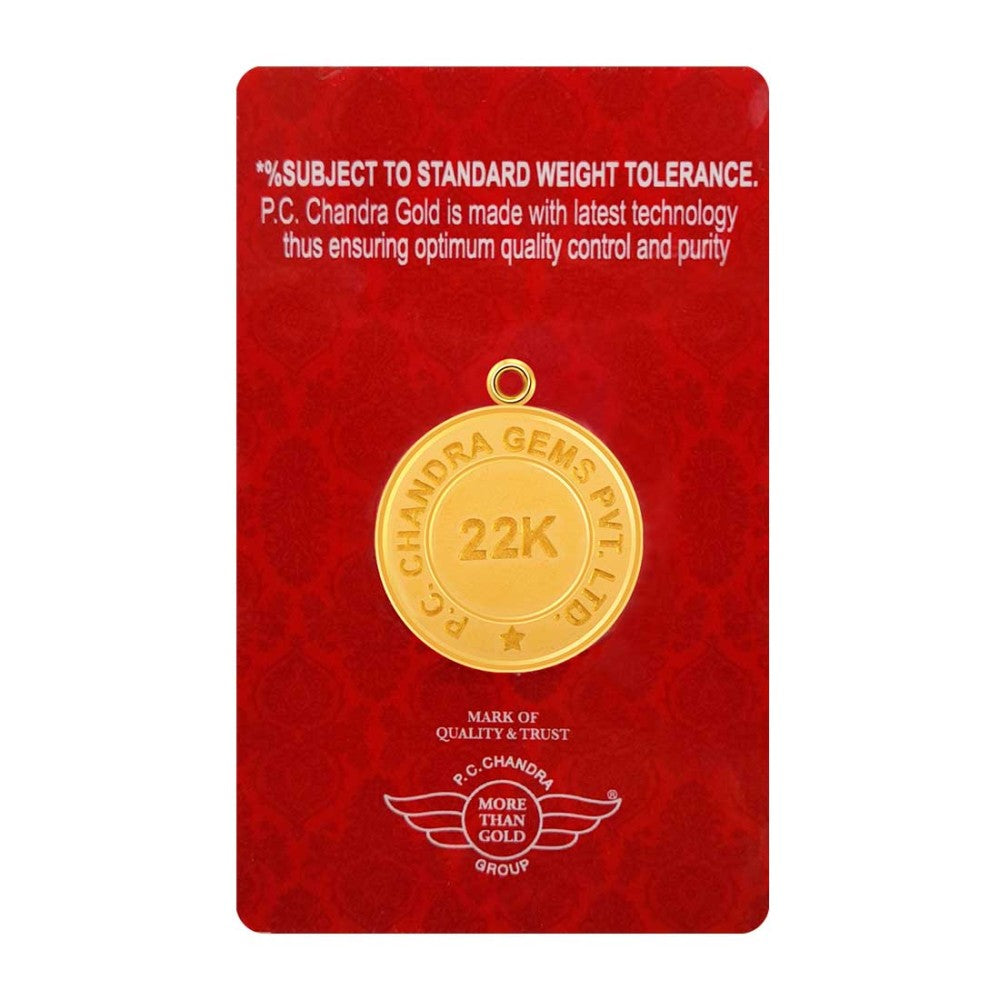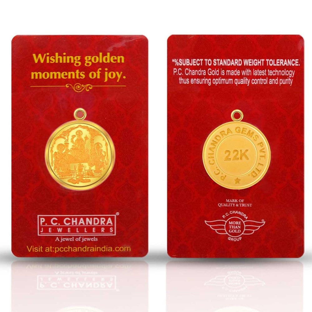 22k, 5 Gm Lakshmi Saraswati Ganesha Gold Coin Pendant.