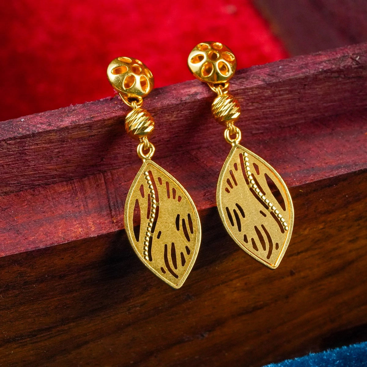 22KT (916) Yellow Gold Abstract Leaf Design Drop Earrings