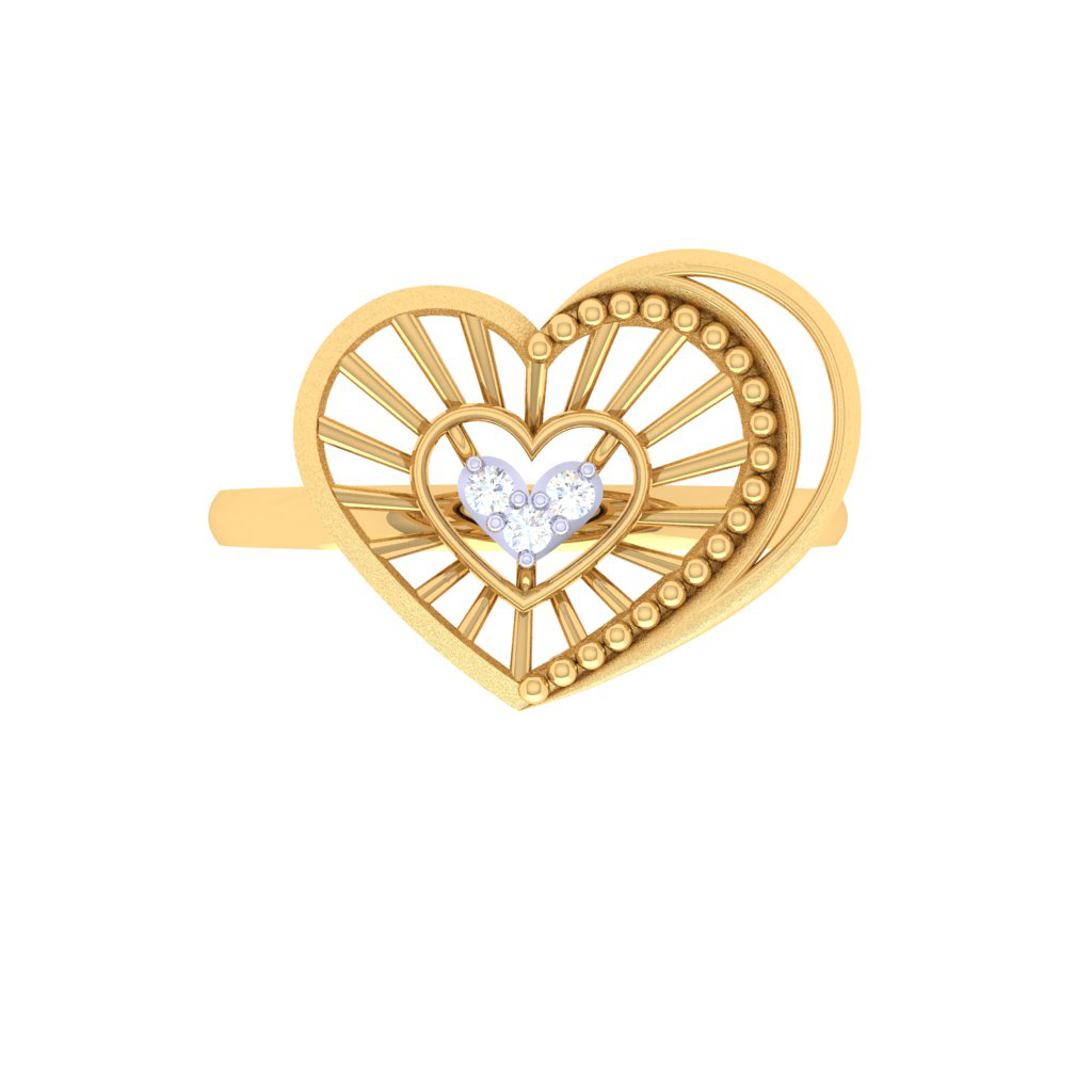 This is a lovable heart-shaped ring with three 0.04 CT diamonds studded in it that comes with SGL/EGL/PCC CERTIFICATION. The 18K ring is made up of BIS hallmark gold and is dimensioned 1.4cm*2cm*1.4cm that weights 2.05gms.