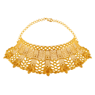 Buy The Regal 22K Gold Necklace With Intricate Jali Work And Flower Details from NABC Collection by PC Chandra Jewellers